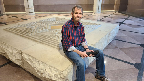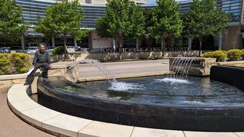 When we left, we stopped out in front of the hospital where there is a neat fountain that Fred wanted a picture of: