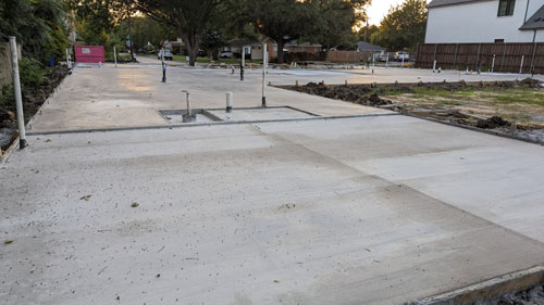 On my way back home, I walked under the roof of what I think will eventually be a large patio outside the kitchen at the back of the house. I was interested in looking at the roof structure. It appeared that there was no support for the roof at its corners. Perhaps it will be cantilevered, but I suspect that, eventually, there would be columns built to support it. The current supports look very temporary.