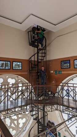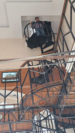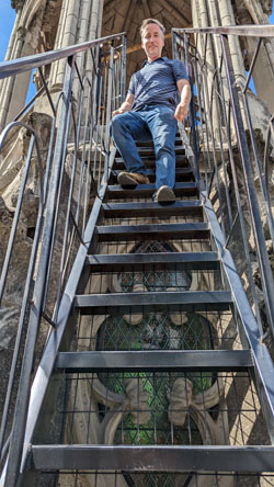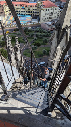 After a while, we were ready to head back down to rejoin Fred and Brad, and I took some pictures of the stairs and on the stairs as we descended: