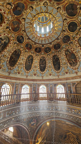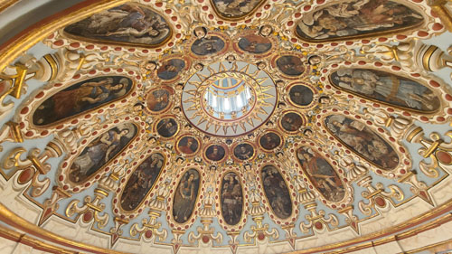 Well, right off the bat, I have to say that being here, inside the dome but high up from the nave floor, was pretty amazing, as I think the pictures we took will illustrate. When our small group got inside, we found ourselves on a wooden walkway that runs completely around the inside of the dome at this level, and we were encouraged to take a walk around it if we wished.