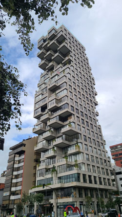 The structure is pretty interesting, almost as if the architect was on a flight of fancy, or wanted to indulge his whimsey. We have seen other highrises similar to this one elsewhere in Quito, which makes me wonder if the same architect was involved.