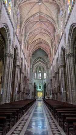 I suppose the first thing I should say about this particular church was that no photography, flash or otherwise, was allowed in the nave of the church. I suppose the second thing I should say about this particular church was that I took the first thing as something of a challenge. I was determined to get my own photographs of the church interior, but I had to do so surreptitiously. Because of that, the photos that I took aren't all that great, so I am going to supplement them with a stock photo (obviously done by a professional photographer with the permission of the church).