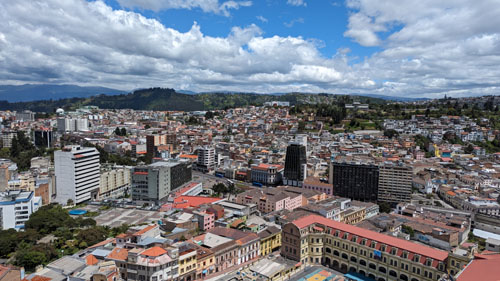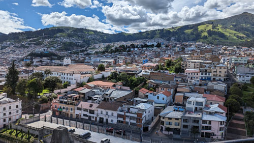 Here is another panoramic view. In this view, the center of the picture, looking towards the Virgin of El Panecillo is almost directly southwest. So the left of the picture is basically south and the right side is basically west. The panorama spans a bit more than that, but the approximation is OK.