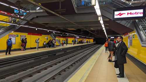 To pay the fare and use the Metro, single-ride users can go entirely paperless, buying their tickets at the ticket office or automated machines and receiving a QR code on their phone that is presented to the reader of the access turnstiles. More commonly, riders can register on the Metro website and get a "City Account," allowing you to recharge your virtual card and generate entry QR codes. We went "old school" and bought our tickets (a small piece of paper with a QR code) with actual cash from an actual human being. Then it was through the turnstiles and down to the platform for the northbound train.
