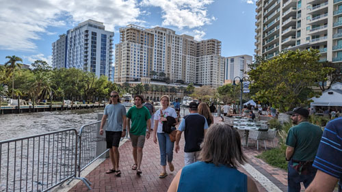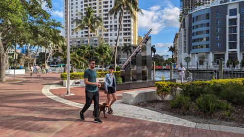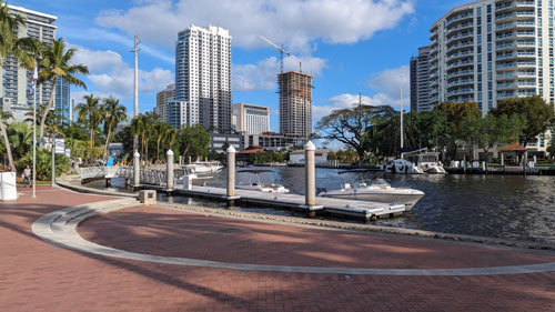The Riverwalk is Fort Lauderdale's penultimate tourist attraction, second only to the beach itself. It extends westward from the new Tunnel Top Park to Sailboat Bend and the esplanade in front of the Science Museum and Performing Arts Center, ending by the Symphony Condominiums.