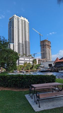 You've seen lots of pictures of the Riverwalk, I suppose; you can see some on just about every album page devoted to a trip to Fort Lauderdale. Today, until we got to Broward Performing Arts Center and the esplanade in front of it, all I did was take pictures of the highrises already constructed or going up on both sides of the river.