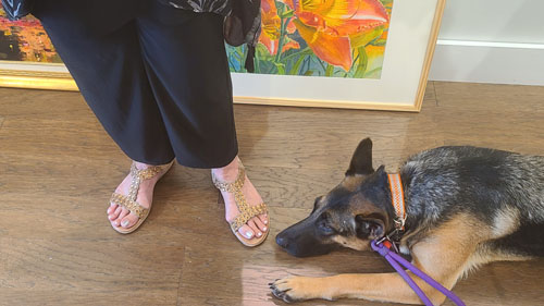 One, at the near right, was taken during a visit by one of Prudence's artists when she happened to bring her own dog, a very well-behaved German Shepherd. Jax was not at the gallery yet; Ron usually brings him over in the afternoon.