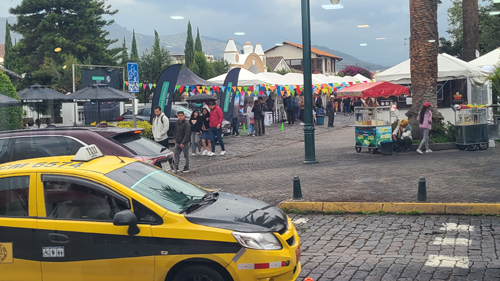 You can see the route we take on the map above. On Orellana we pass a small Mormon church (go figure) and a fairly large nursery operation that we've visited a few times. There are also a few gated communities on the north side of the street. At the bottom of the hill, if you jog to the right, you'll come to Rey Pan (King Bakery) which is Fred's favorite in the area. As you can see on the map, you can get to the square by either turning right or left at the bottom of the hill. If you turn right, you'll curve around the Hotel Cumbaya and take Garcia Moreno down to the square. Turn left, and then right and you will continue on Francisco de Orellana to the square.