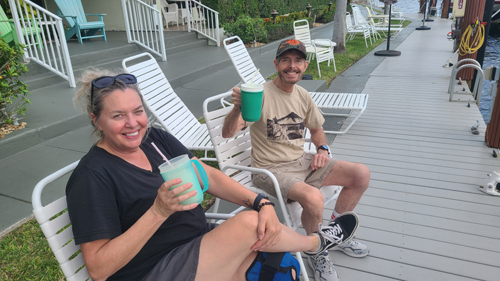 We unloaded everything at the condo and the laptops all set up, and then retired to the dock for a celebratory frozen drink. Then, as is our custom, we headed down to the Floridian Restaurant for dinner. I wish we had transporter technology, but the drive is not a hard one- although sections of it can be boring.