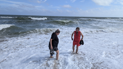 Then it was off with our shoes (or in my case not, as I was wearing the ones I'd bought for our cruise that stopped in Belize for cave tubing) and down to the water's edge.