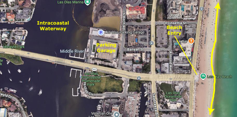 One of our outings with Jeffie during her visit was a walk over on Fort Lauderdale Beach, so here is an aerial view of that part of the barrier island between the Intracoastal Waterway and the Atlantic Ocean: