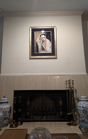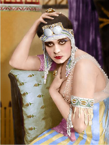 That is what she did with the picture of Theda Bara that I purchased- a closeup of which you can see at right. With the light shining on it from above, it does indeed sparkle and the picture comes to life.