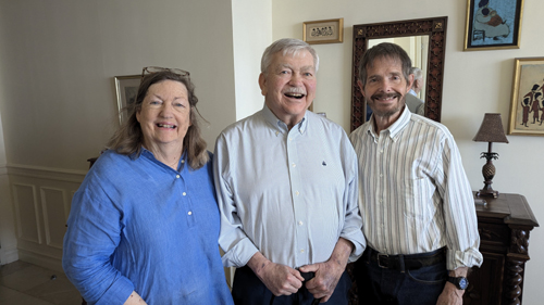 With all that background, we arrived at Bruce's building just about 12:30. He'd left instructions for the concierge and we were directed from the lobby over to the south building and to the elevators up to Bruce's floor (which, if I recall correctly, was floor 12). I won't try to recount all that we talked about catching up; it won't mean anything at all to you, the reader. Suffice it to say that Bruce and his wife have seen their little girls grow up, marry, and have lives and families of their own. Bruce has been successful, and he and his wife have few regrets looking backward. We talked about old Davidson friends, and I caught Bruce up on people like Steve Lee and Ed Shuping. Bruce's wife and Fred alternated with a couple of pictures to record our visit: