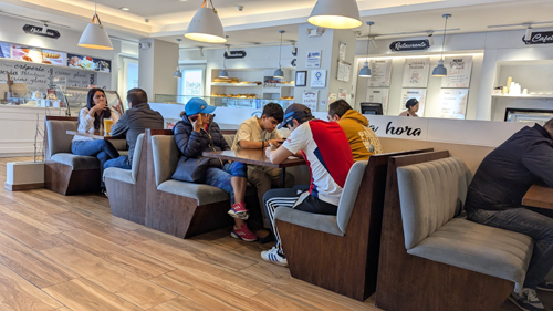 I met a lot of very nice people, many of whom spoke a good deal of English (and one or two who were expats from the US and of course spoke quite well). I joined the group chat on WhatsApp, which is how people find partners for the games (although a good many partnerships are of long standing). Perhaps because Ruben and I did so well, two people who didn't have established partnerships for this Wednesday game asked if I might want to play with them. Of course I was happy to, and for the next four weeks I had a standing date for the Wednesday game.
