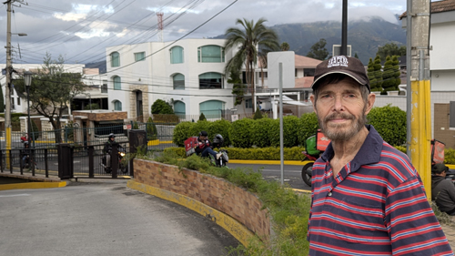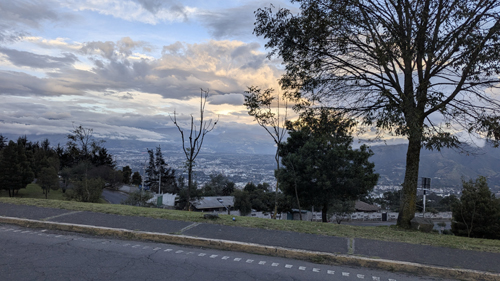 On a different day, Fred and I were standing in front of Paseo San Francisco, and in this picture Fred took you can see the overpass behind me. On a different day, Fred took another good picture looking in the same direction, and you can see the overpass as well as the Tumbaco Valley in the background.