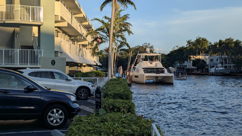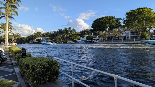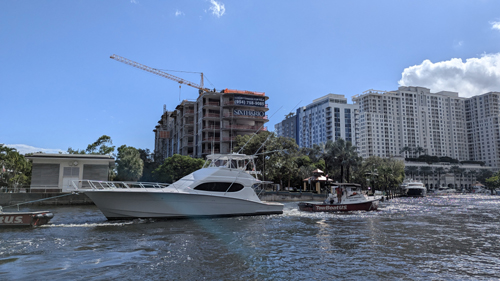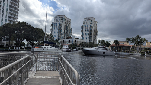 It ends just south of those highrises on West Las Olas Avenue just north of the drawbridge that takes The Avenue of the Arts over the New River. You can see most of these things in the two pictures we took here today: