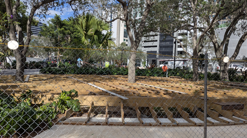 This park has been here for many years, and, up until now, has simply been an open lawn with a walk circling the lawn. At the northwest corner there has always been a lighted fountain, unusual in that it had sensors that allowed passersby to control the height of the fountain and/or which nozzles were active at any given time. We have very often stopped at this fountain, which is at the corner of Las Olas and Andrews Avenue.