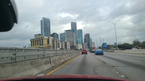 The trip home is up I-35. The traffic is not so bad because we are going through the most congested areas early in the day rather than in the afternoon, and we made the trip without incident. As we approached and went through Austin, I commented to Fred how much the downtown has changed since we first started visiting or passing it regularly. This prompted him to take out his phone and snap the four pictures below: