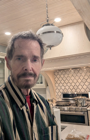 In the left-hand picture at left, you can see most of the features of the new kitchen. First of all, you can see the beautiful new cabinets, and there are many more around the kitchen, including a full pantry that is behind Fred as he is taking this picture.