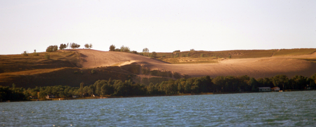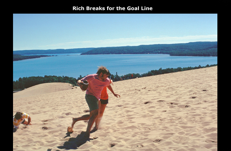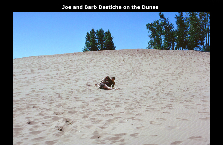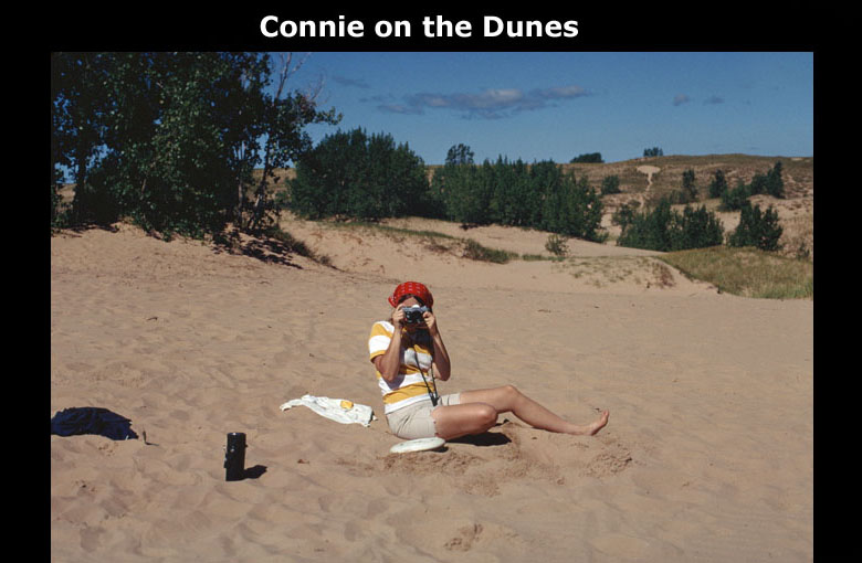 There are two things I do know and did record. One was that we had the use of the Seward family's motorboat, and that we took it out once or twice on a lake between their house and the state park. (I remember this because I tried water skiing for the first time, and when I fell off the skis, I lost one of the two pairs of glasses that I brought.) The other was the fact that we spent most of our time at the State Park. We did a lot of neat things, fishing, water skiing, climbing the sand dunes, and so on. Carol got her nickname of "Cruncher" from the football game played on top of the dunes one afternoon. We had cookouts and the whole bit, everyone thoroughly enjoying themselves.