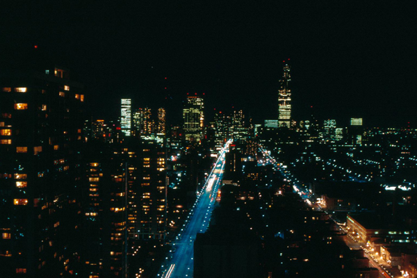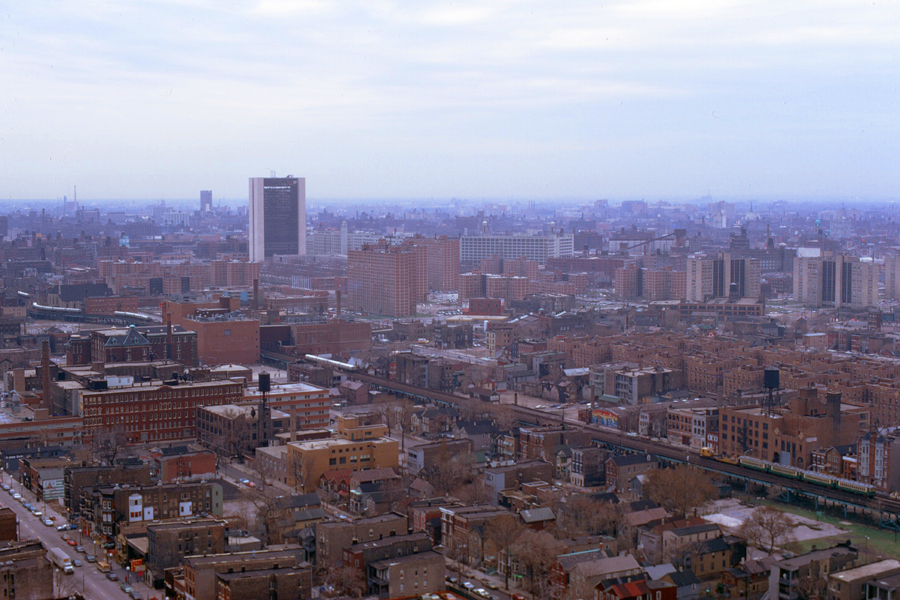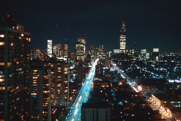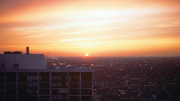 This photo is a relatively current one (as I create this page in 2019), although the building really hasn't changed much in 45 years. The apartment that we were the first to rent is on the southwest corner of the building, on the 36th floor. Our balcony is on the south side of the building, the living room has south and west windows, and the bedrooms have west windows.