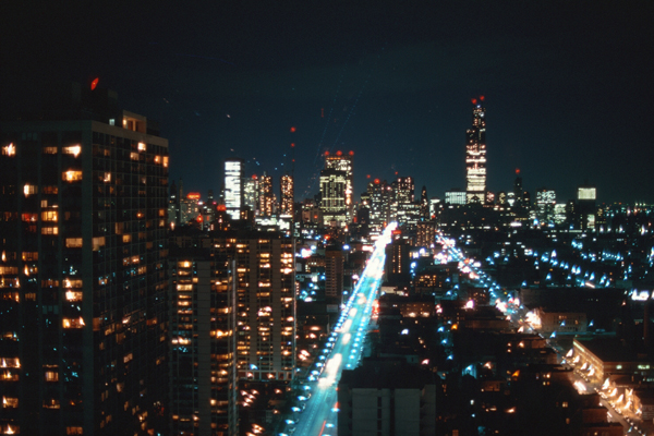 One evening, I brought my camera out onto the balcony, along with my tripod, to try to take some nighttime views of downtown Chicago. I experimented with various f-stops and exposure times, and did get a few pictures that turned out well. Here are two of them: