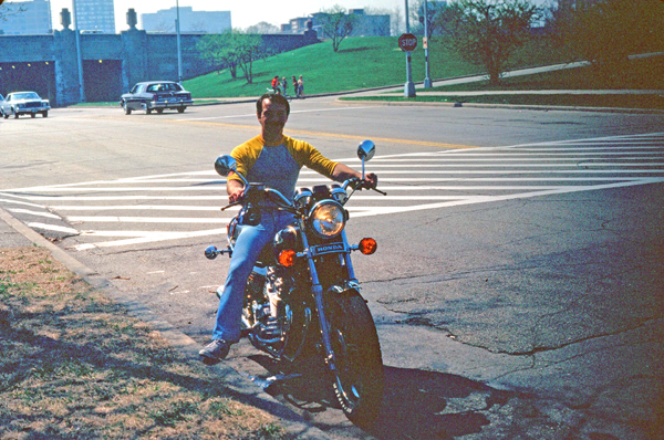 I got there in time to watch Tom arrive on his motorcycle; the same one I rode on out to Naperville to watch the skydivers.