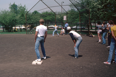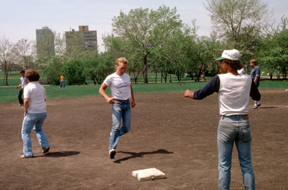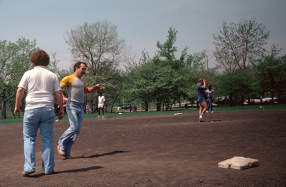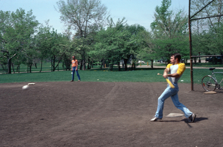 | "Looking back on these pictures from almost a year later, I am struck by the transient nature of some friendships, particularly some gay ones. Although I didn't know it at the time, this ball game was the next to last time I saw Tom. There was no dramatic falling out, nor did he or I move away. It seemed that we stopped seeing each other simply by mutual consent. I understand that some time later he did move to Minneapolis, but that was certainly not the reason. I guess that, although we might have been physically attracted to each other, there were not enough common interests to keep a friendship alive and growing, like my friendships with Tony (who is not gay) and Greg (who is)." |