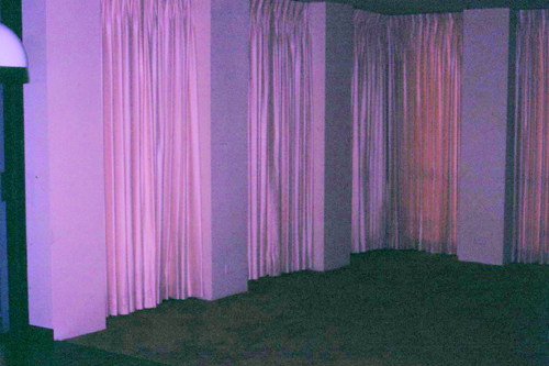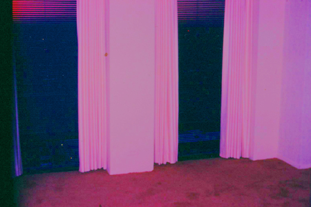 I walked down the hall to the master bedroom, and took the picture at left that looks west (you can see the late afternoon setting sun through the miniblinds.
