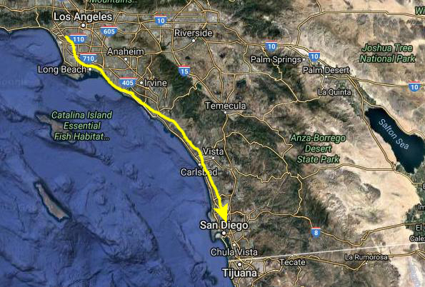 We continued down Interstate 5 towards San Diego. About twenty miles north of town, development returned, and I-5 became six lanes in each direction- a testament to the exploding population of Southern California. We passed by La Jolla, where I had joined IST in 1979, and soon came to the exit for San Diego International Airport.