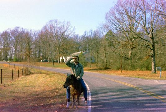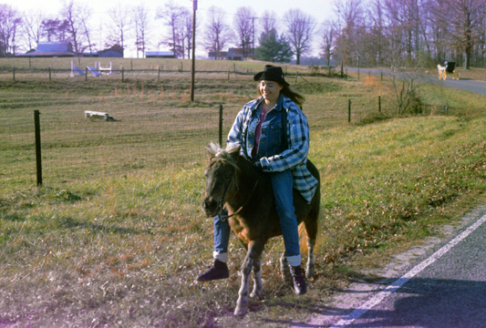 At left, Judy said that the pony could carry me quite OK, so Jennifer goosed it along and stepped out of the picture so that Grant could get this shot.