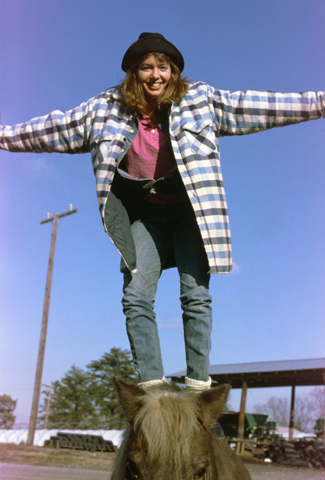 ![]() This is my niece Jennifer riding one of the two ponies that reside at Greyfield Farms. Judy's property is behind Jeffie in the picture. |