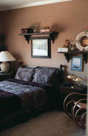At the first of the year, Grant left Anderson Associates, and now works at Gabbert's, a very upscale furniture store near the Galleria. He is just getting started there, building up a clientele, but has already started doing what he did at Habersham Plantation- buying stuff from the store for himself. The lamp on the night stand, the rocker and the bed linens were all purchased there, as was the lamp on the table in the far corner. Grant doesn't seem to worry about saving money; he turns it pretty quickly into furniture or accessories, but I guess in inflationary times that isn't such a bad idea.