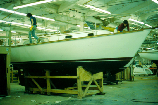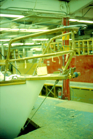 The Cape Dory 25D has been single-handed across both the Atlantic (New York to Ireland) and Pacific (California to Australia) oceans and a solo circumnavigation was completed in a Cape Dory 28. Richard wanted some pictures inside, so I checked with the factory manager and he was fine with my wandering around for a few minutes. I have no idea exactly what I was looking at, but here are the pictures I took: