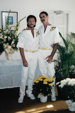 Dennis called to tell me about the ceremony, and to tell me that he and Hal are very happy; I wished them the best. I was pleased that about a week later, I received the photograph at left in the mail. Dennis is on the left and Hal is on the right.