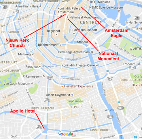 I recalled the hotel as being very nice, and it was just as I remembered it. Europe is pretty expensive, and the hotel was no exception, but I had my per diem for the two weekend days and that more than covered it. I arrived in the early evening on Friday. As soon as I checked in, I went right out and did my jogging, following the same route that I had taken before. I had some supper and then drove into the city center. I went to a bar I'd been to before and walked around the city for a while; Amsterdam is pretty active even very late at night). I was tired, so I went back to the hotel early.