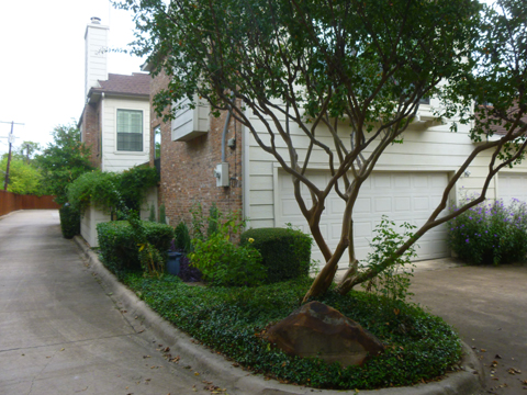![]() This view looks at the back of the townhouse across the traffic island; those are the windows of the Family Room above the garage. |