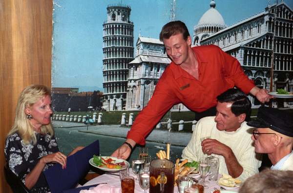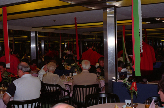 Most times, all the tables in the dining room would be full, but sometimes people would choose to eat in their cabins or up on the Lido deck, or just save themselves for the midnight buffet. The cruise line made an effort to provide some additional spice to each meal, with Italian night being just one of the special dinners, with a group of entrees and desserts that were nominally Italian. For the unadventurous, the menu always included a list of standard upscale restaurant fare.