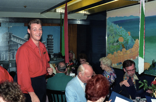 John got used to us and our idiosyncrasies pretty quickly; he and the busboy Patek were quite pleasant, but then of course they are paid to be. I can't remember each meal, but all were good with only minor exceptions. The dining room staff was a veritable United Nations- John was from England and Patek came from Pakistan, while the restaurant manager was Italian. Dinner usually took about an hour and a half, and was always very enjoyable, unless Grant happened to be feeling poorly which, thankfully, was only once that I can recall. Here are a couple more pictures from Italian Night: