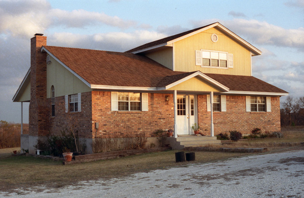 On this particular trip, I brought my camera and took a couple of pictures of the house. Unfortunately, it was late in the day already when I got there, and the sun was fading. This is the front of the house. Fred has no garage (yet) but says that he hopes to build one on next year.