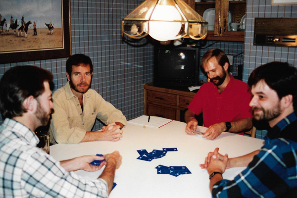 It's an activity we all enjoy, and it has become something of a habit. We play Hearts and Spades, mostly. Ron is very competitive, like me, so it is not just a casual game. We play for blood (at least he and I do). Fred and Chris are a bit more interested in the getting together than the game itself.