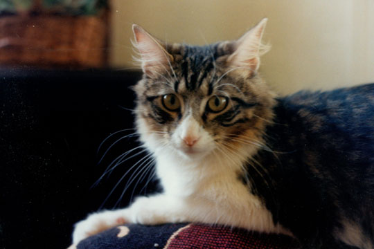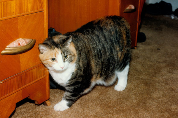Suzy is ten years old and quite "full-figured". Fred fights a constant battle to try to get her weight down, but has had little success. Suzy is a wonderful cat, although she takes her time to get used to you. I had to come up there quite a few times before she would let me approach her and pet her for any length of time. But she is really a very nice animal.