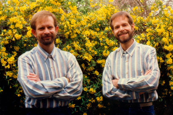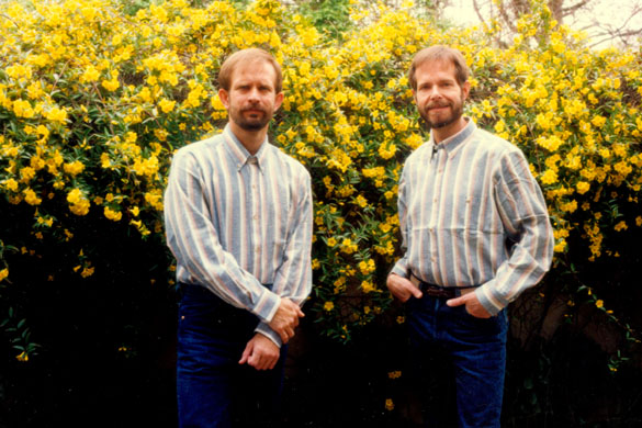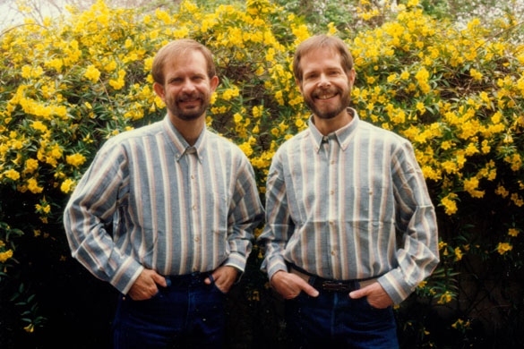 Fred and I are always having people ask us if we are twins or brothers, and while I can see a resemblance enough so that people might logically conclude we are related, for the life of me I cannot understand how anyone would think we are twins (although to be fair, people may be thinking of fraternal twins, not identical ones). However, in some of these pictures, where we are wearing identical outfits, I can almost see twins.