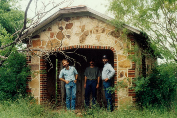 ![]() Fred, Frank and Joe at grandfather Hanson's farm. This building was an old car shed, or garage. Note the interesting stonework. |