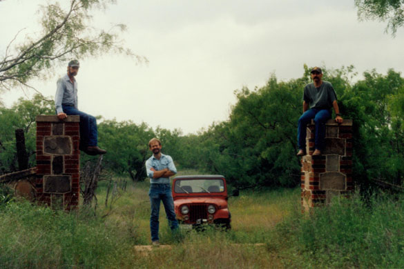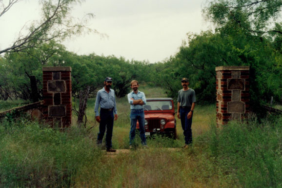 ![]() Fred, Frank Robert and Joe Wells at the original entrance to the farm of Fred's grandfather Hanson. |