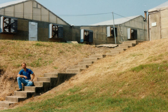 ![]() Here are some of the greenhouses at Crump's; you can see the huge fans that keep the air moving through the houses both in summer and winter. If the air is ever still for very long, in summer the plants will dehydrate and in winter they might freeze. The greenhouses are on a series of small hills. |