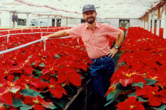 House after house gets filled with these pots of poinsettias- maybe 20,000 per house in six or eight houses. Then it is just a matter of keeping them in good shape as the time changes throughout the fall and into November. By the middle of November, the first of them are ready to send out to florists and wholesalers. And after Thanksgiving, Crump's starts sending them out by the truckload. Two weeks later, by mid-December, many of the houses have nothing left but nostalgia- kind of like college when you are the last person to head home for the holidays and everything is empty.