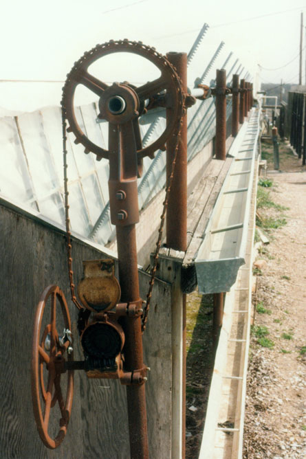 Fred also brought me an "artistic" shot of some of the greenhouse machinery that automatically opens and closes some of the older greenhouses. This is the gear drive for the vents on old greenhouses 1 and 2.