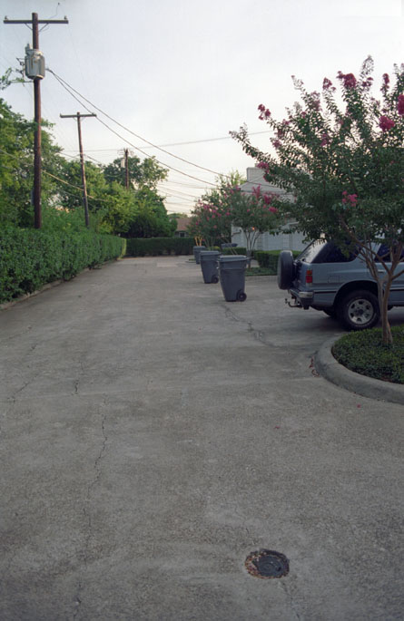 To finish the roll, I took one more picture on Sunday evening of the driveway behind our middle building, looking north from the front corner of my townhouse. Tomorrow is a trash pickup day, and some of the residents have already wheeled out their bins so they can be picked up.