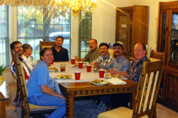 Invited for the day were Fred, who took the picture at left, and, around the table beginning with my niece Jeffie, in blue: Jeffie, myself, my Mom, Lowery, Barry Skiba, Ron Drew, Brad, and Sherman Carter. I should have immediately gotten Fred's camera from him and taken a picture with him in it, but I neglected to. My bad.